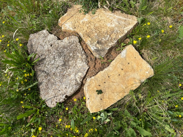 Neben den „Inseln“ aus ungewaschenem Mauersand genügen oft schon stärkere Steinplatten mit mindestens 6 cm Dicke, die man – wie in unserem Fall – am Rand einer Obstwiese oder auch im Magerrasen auslegen kann. Dünnere Steinplatten hingegen heizen sich so stark auf, dass mögliche Gelege darunter verbrennen können. Mit Lesestein- und Knüppelholzhaufen kann man seine Grundstücke zu naturschutzfachlich wertvollen Biotopen weiterentwickeln. Ein Bedecken der Sonnenplätze mit dornigen Sträuchern schließlich bietet den wärmeliebenden Amphibien einen guten Schutz gegen Raubvögel.