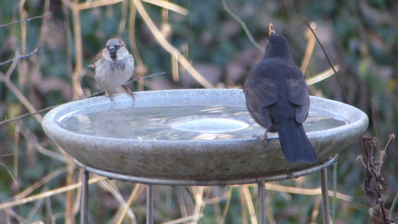 Da natürliche Wasserquellen im Winter nicht immer in ausreichendem Maße zur Verfügung stehen, empfiehlt es sich, auch in dieser Jahreszeit Vogeltränken aufzustellen und so unsere Futterplätze im Garten durch Angebote von sauberem Wasser zu ergänzen.